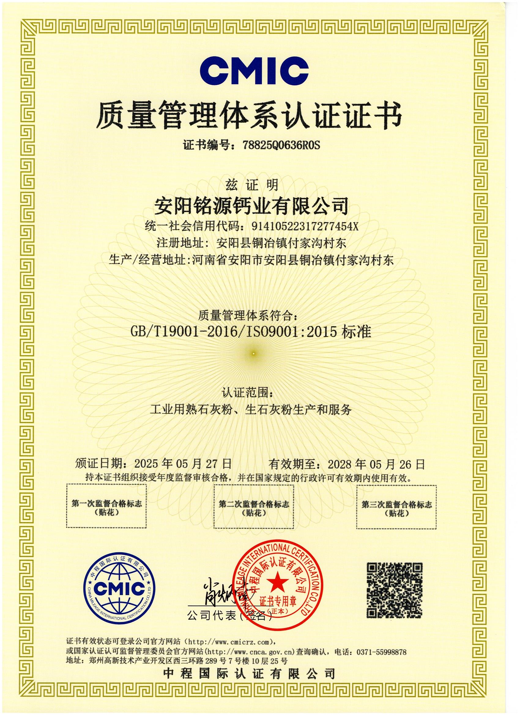 質(zhì)量管理體系認證證書